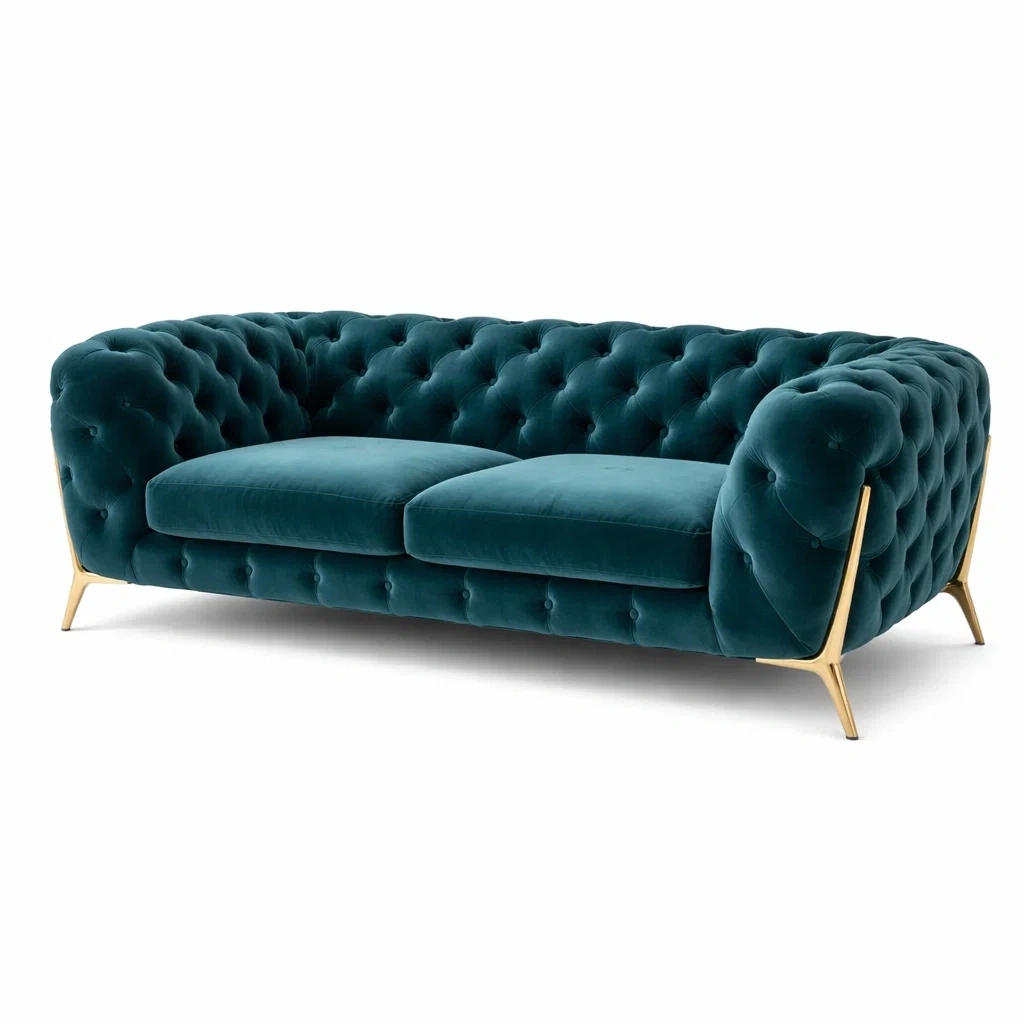 Divano in velluto con gambe in metallo oro 230x90x75 cm