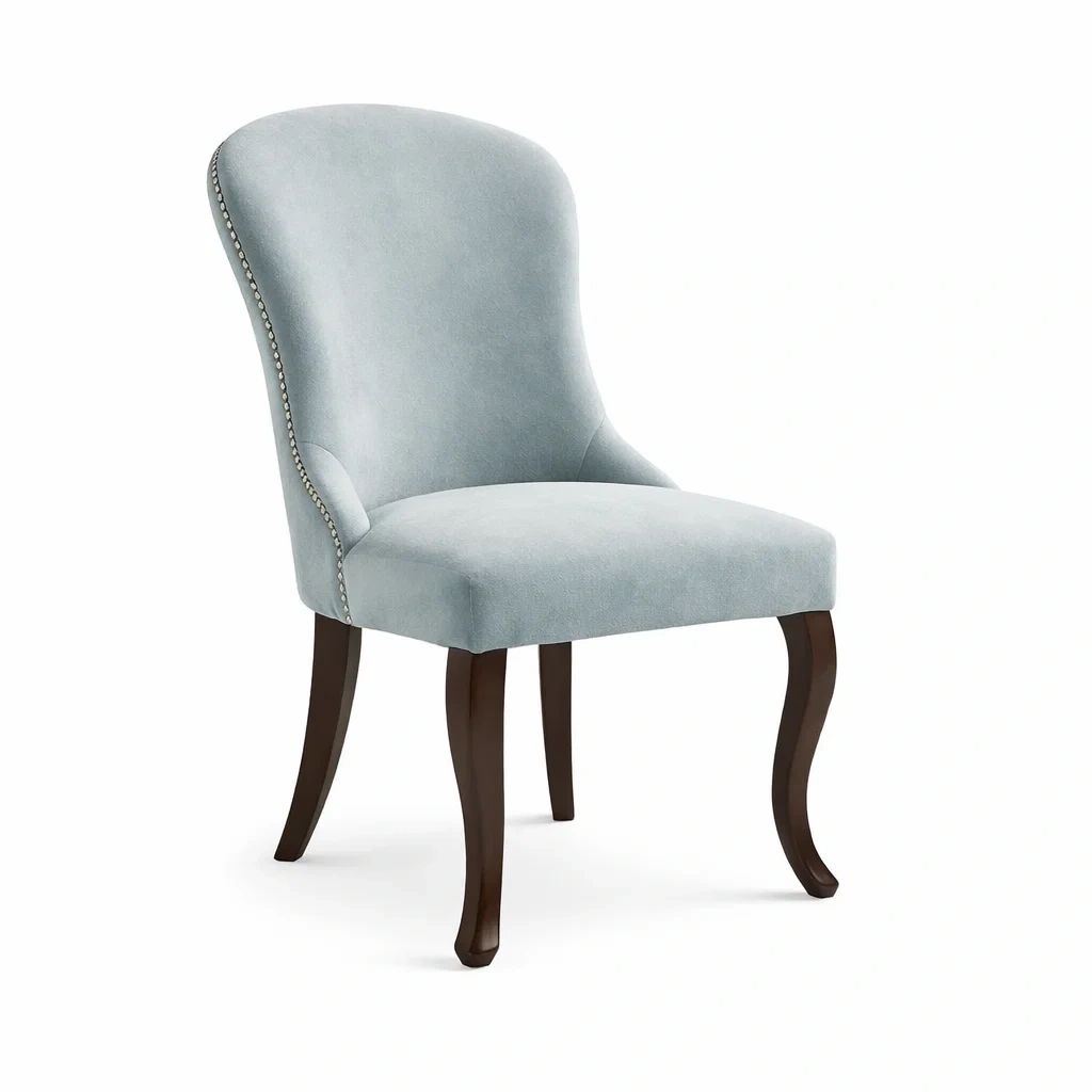 Sedia da pranzo in velluto blu con gambe in metallo