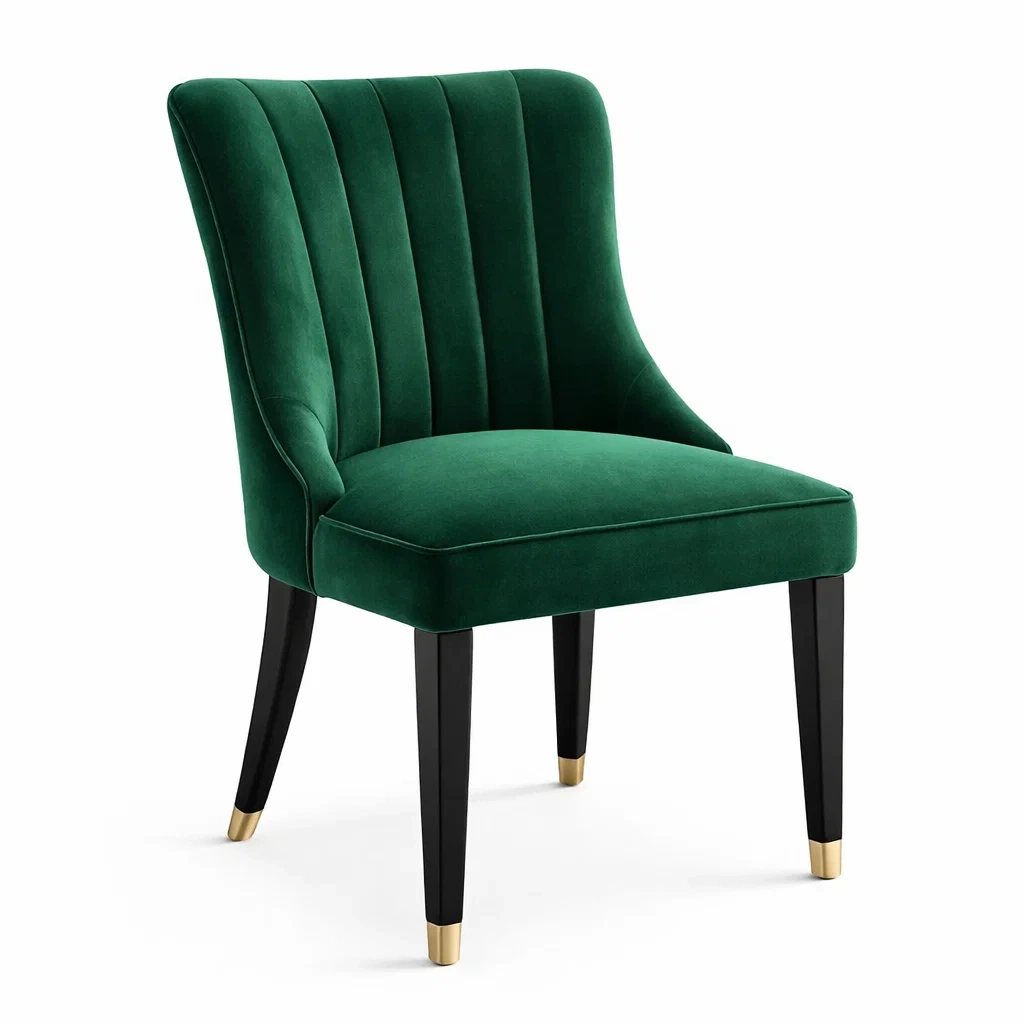 Sedia da pranzo imbottita in velluto verde con gambe in legno