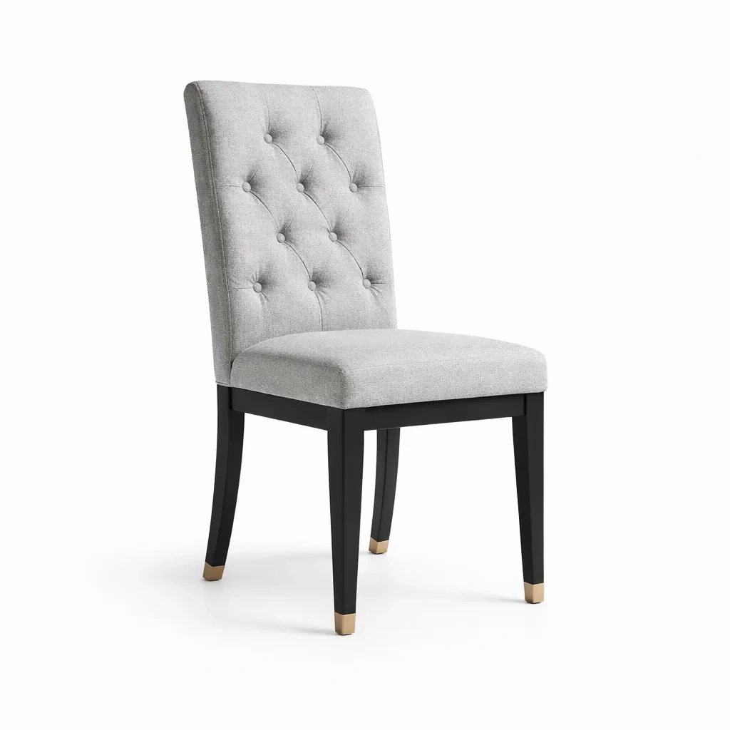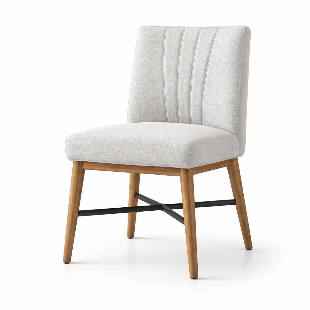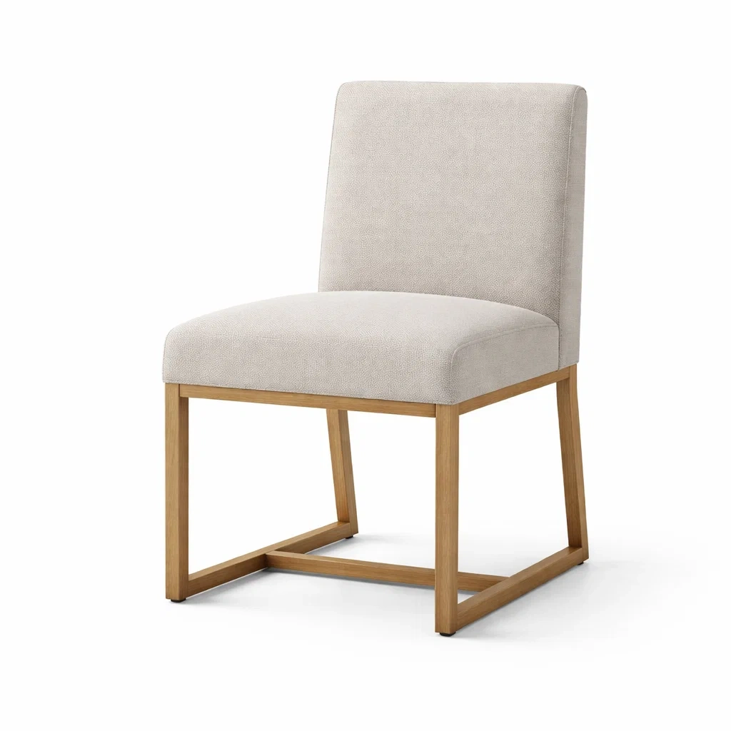 Sedia da pranzo in tessuto beige con struttura in legno