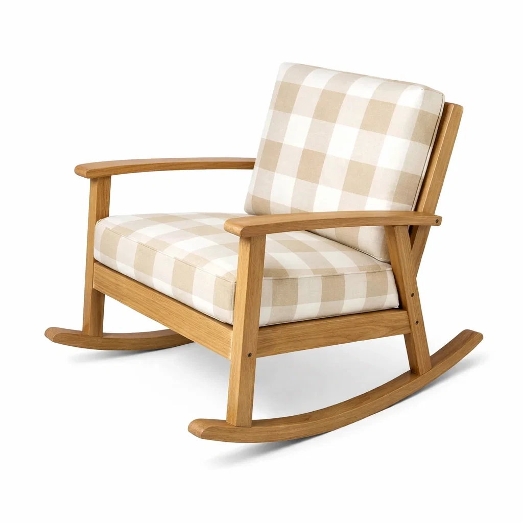 Materiali: Struttura in legno di rovere, cuscini imbottiti con tessuto di cotone a quadri.